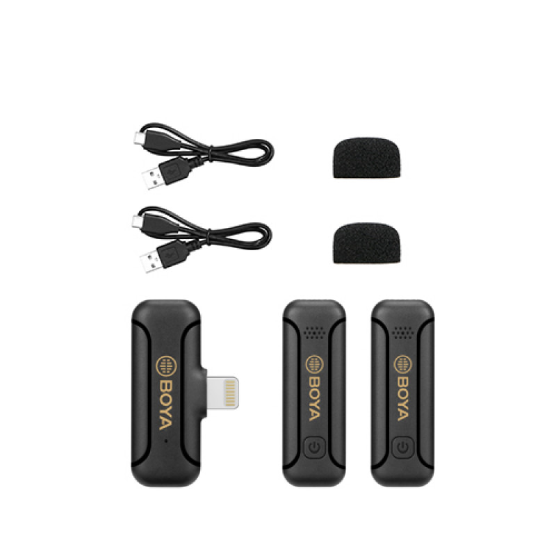 Мікрофон Boya BY-WM3T2-D2 є міні-мікрофонною системою з частотою 2,4 ГГц, яка забезпечує високоякісний звук для прямих трансляцій, відеоблогів, запису курсів та інших програм для захоплення звуку. Система має MFI сертифікований Lightning інтерфейс, сумісний з пристроями Apple iOS, і поставляється з двома передавачами і одним приймачем, що дозволяє одночасно записувати два джерела звуку.