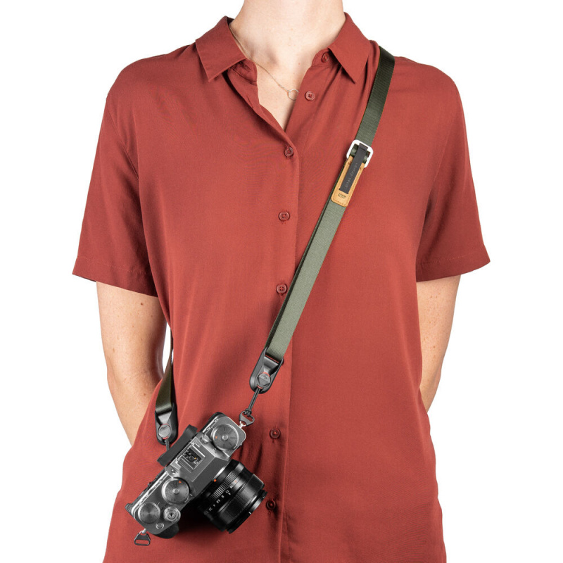 Ремінь оснащений запатентованою системою карабінів Peak Design Anchor Link, що дозволяє швидко від'єднати камеру або замінити її на інший апарат. Також в комплект включений швидкознімний майданчик, який дозволяє підключати ремінь до нижньої частини камери для отримання додаткових конфігурацій. Як варіант, можна вкрутити будь-який швидкознімний майданчик в камеру через петлю карабіна Anchor Link, і використовувати камеру як на штативі, так і для швидкого приєднання плечового ременя.