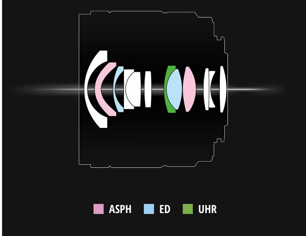 Оптимізована конфігурація включає 12 елементів у 9 групах, включаючи 2 лінзи ASPH, 2 ED та 1 лінзу UHR, щоб звести до мінімуму аберації та забезпечити чудову роздільну здатність.