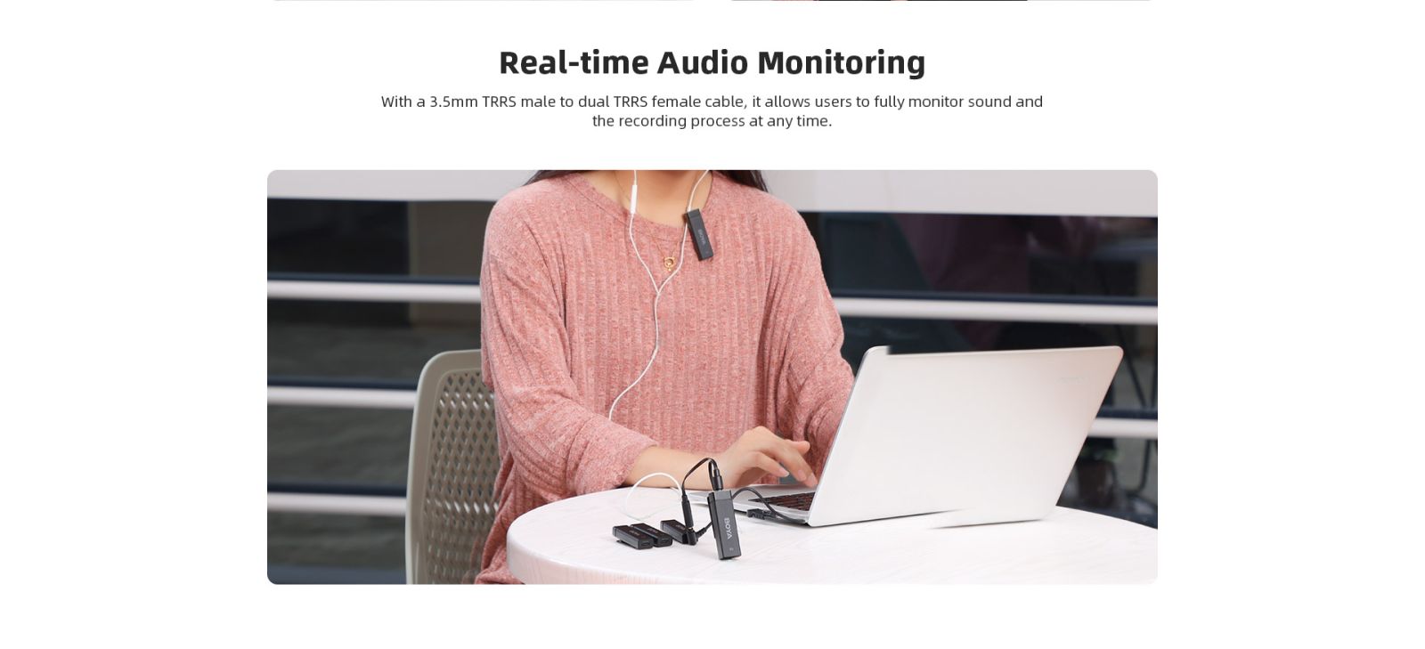 У BY-W4 приймач включає два 3,5 мм TRRS вихідний кабелі, які працюють плавно з камери, смартфони, комп'ютери і т. д.