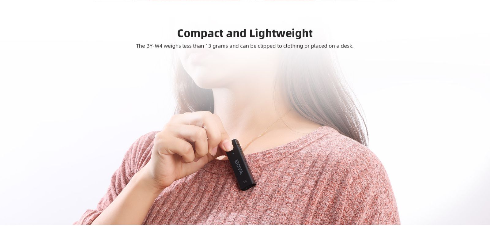 При вазі менше 13 грамів BY-W4 переноситься та зручно носити з собою.Незалежно від того, чи є музикантом, презентатором або органайзером подій, це відмінний вибір для захоплення та посилення чіткого та динамічного аудіо.