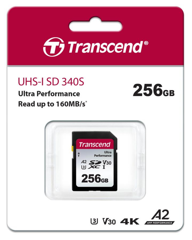 Карти пам'яті Transcend SDXC 340S відповідають стандартам UHS Speed Class 3 (U3) та UHS Video Speed Class 30 (V30) для відеозапису 4K Ultra HD зі швидкістю читання/запису до 160 МБ/с та 90 МБ/с відповідно. Вони також відповідають останнім специфікаціям A2 для забезпечення високої продуктивності мобільних пристроїв.
