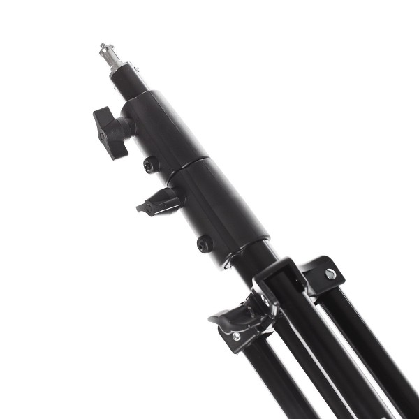 Конструкція стійки розділена на три секції, які фіксуються міцними затискачами-гвинтами. Для безпеки Вашого обладнання та довговічності самої конструкції стійка має спеціальну амортизувальну систему, засновану на пружинному механізмі. Завдяки цій системі секції складаються плавно, оберігаючи обладнання від тряски/удару в нижній точці складання секції.