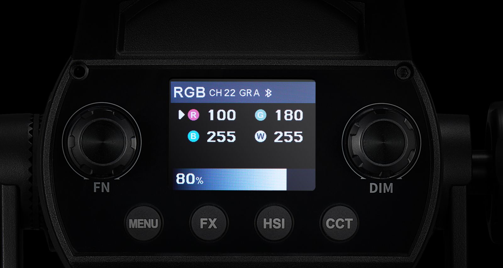 Режими: CCT / HSI / RGBW / GEL / FX