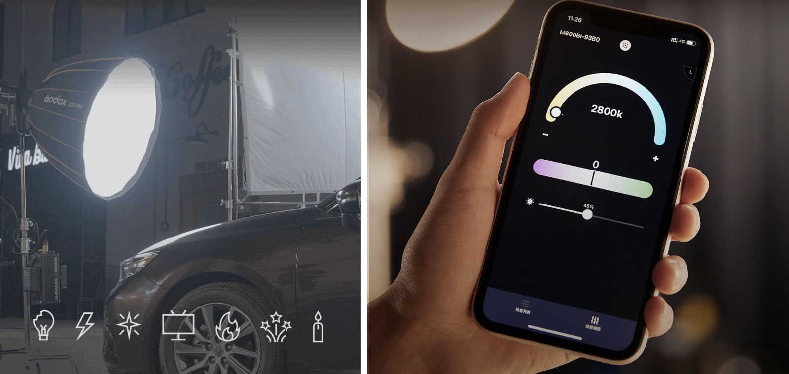 Завдяки 7 вбудованим кінематографічним ефектам M600Bi дозволяє моделювати різні сценарії освітлення на знімальному майданчику для реалізації виробничого завдання.