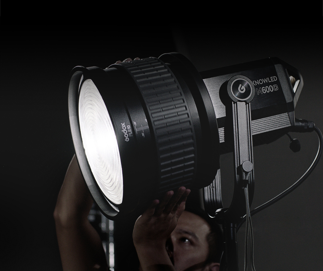 Освітлювач M600D, оснащений оптичною насадкою Godox FLS10 c кріпленням Bowens, забезпечує ще більш яскравий промінь, що поширюється далеко, зі стабільними характеристиками. Безліч технологій, що лежать в основі FLS10, слугують одній меті - максимізувати потужність при збереженні якості світла.