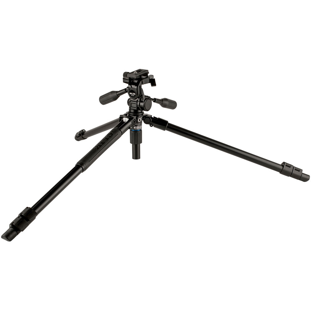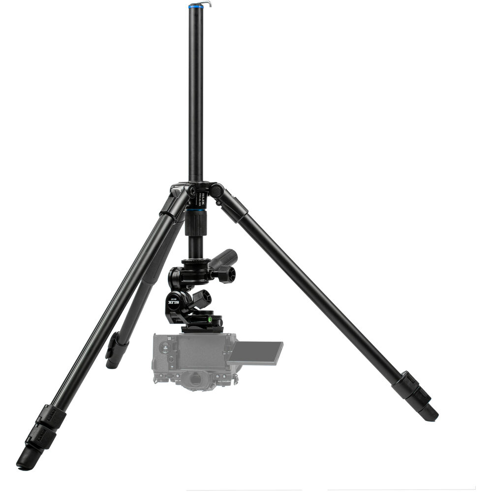 Це універсальний штатив із вантажопідйомністю 8,8 фунтів і максимальною висотою 75,5 дюймів із повністю висунутою центральною колоною. Ніжки оснащені поворотними з’єднаннями для швидкого налаштування, а механізм швидкого повороту (R.F.M.) дозволяє розсунути кути ніг для легкого вирівнювання на нерівних поверхнях або для зйомки з низьких кутів.Центральну колонку можна знімати та перевертати для зйомки за допомогою камера перевернута майже до рівня землі Центральна колона складається з двох сегментів, коротка частина колони дозволяє розвести ноги для зйомки в дуже низькій перспективі.