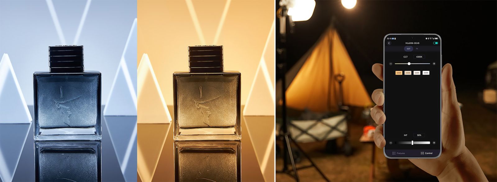 Насолоджуйтесь широким діапазоном колірної температури від 2800 до 6500 к, що дозволяє легко адаптувати його до умов навколишнього освітлення. Завдяки високому CRI (96+) та TLCI (97+) ML60II Bi забезпечує яскраве природне світло та точні кольори.