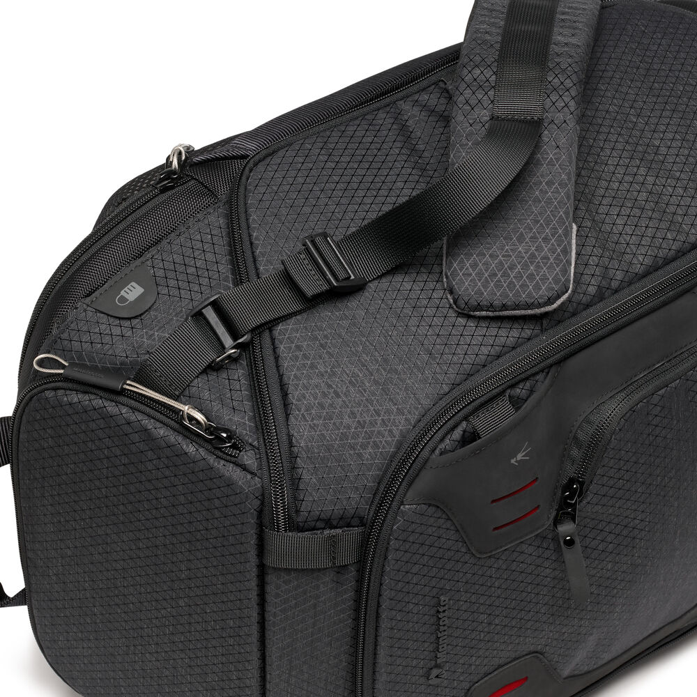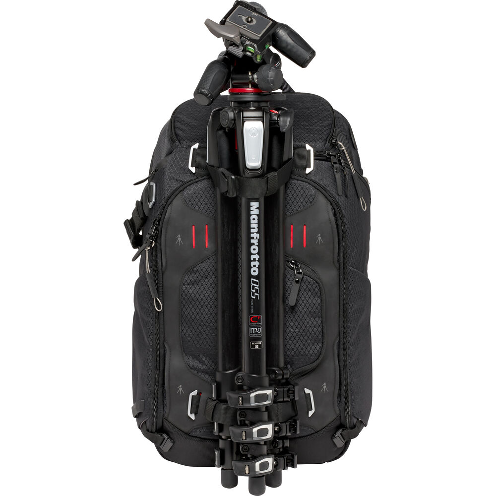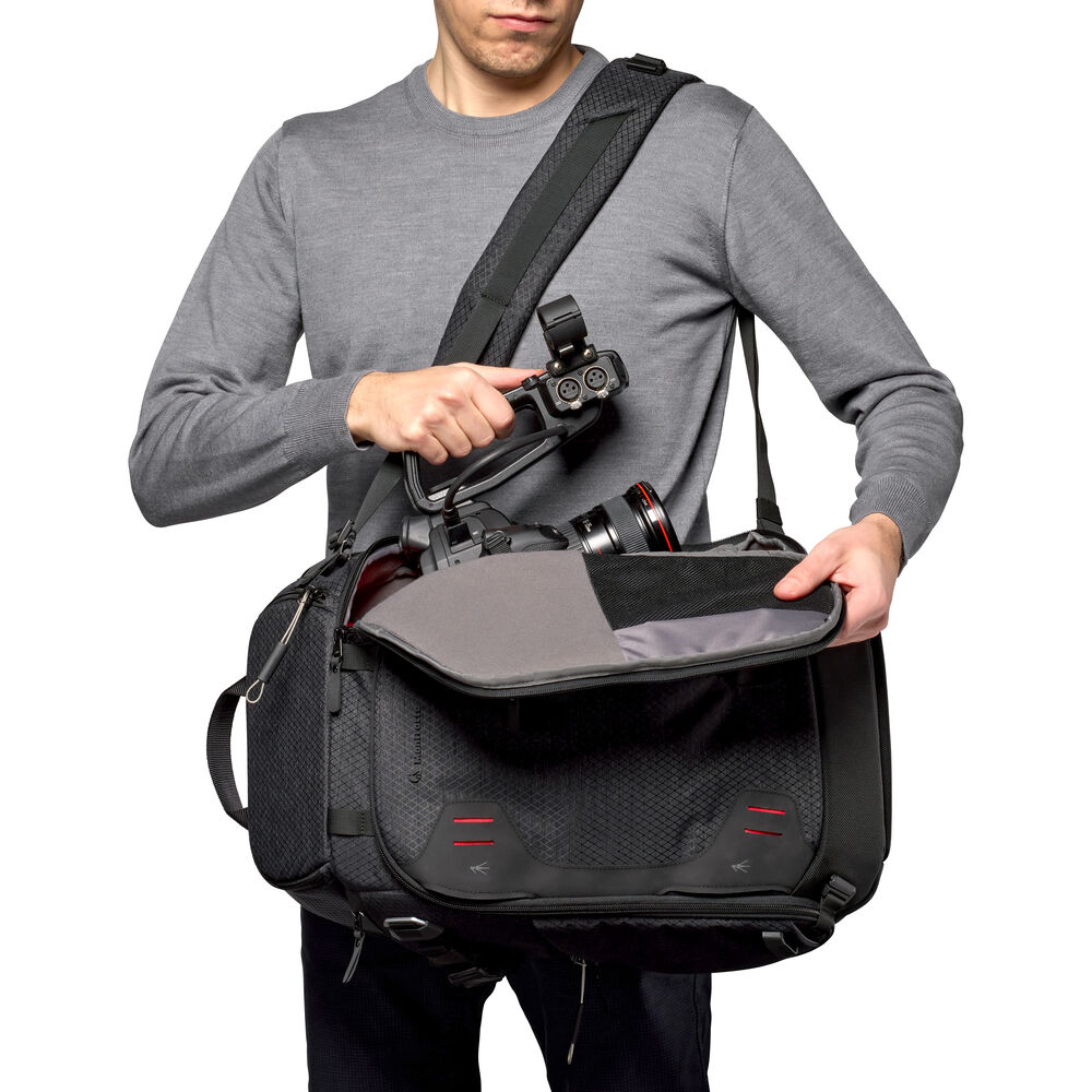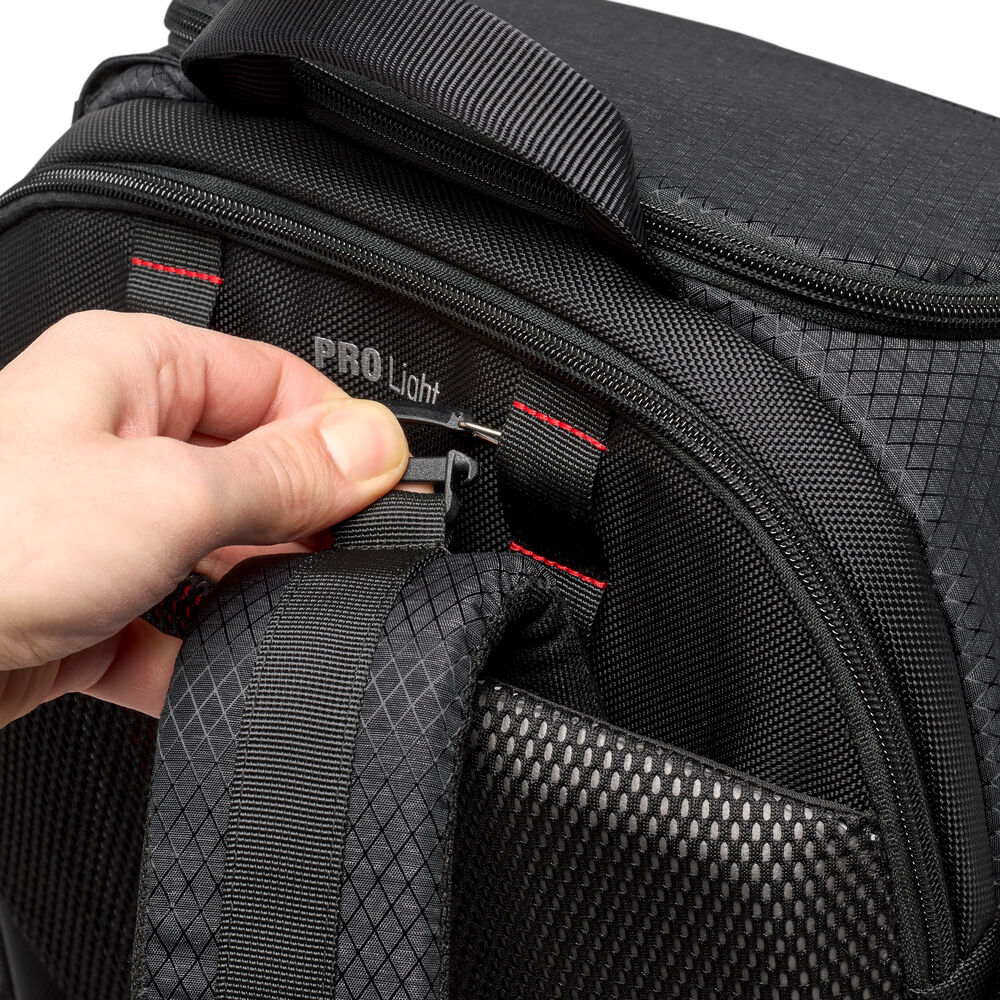 Великий рюкзак Manfrotto Pro Light Multiloader 26L Camera Backpack, призначений для професійних стрільців у дорозі, які не хочуть залишати позаду жодного спорядження, вміщує дві дзеркальні або бездзеркальні камери з прикріпленими об’єктивами, до чотирьох додаткових об’єктивів, складаний дрон, аксесуари, ноутбук, особисті речі. З огляду на всю цю вагу спорядження, Manfrotto розробив регульовану систему ременів, укомплектовану нагрудним ременем і ременем, для ідеальної та максимально зручної посадки.