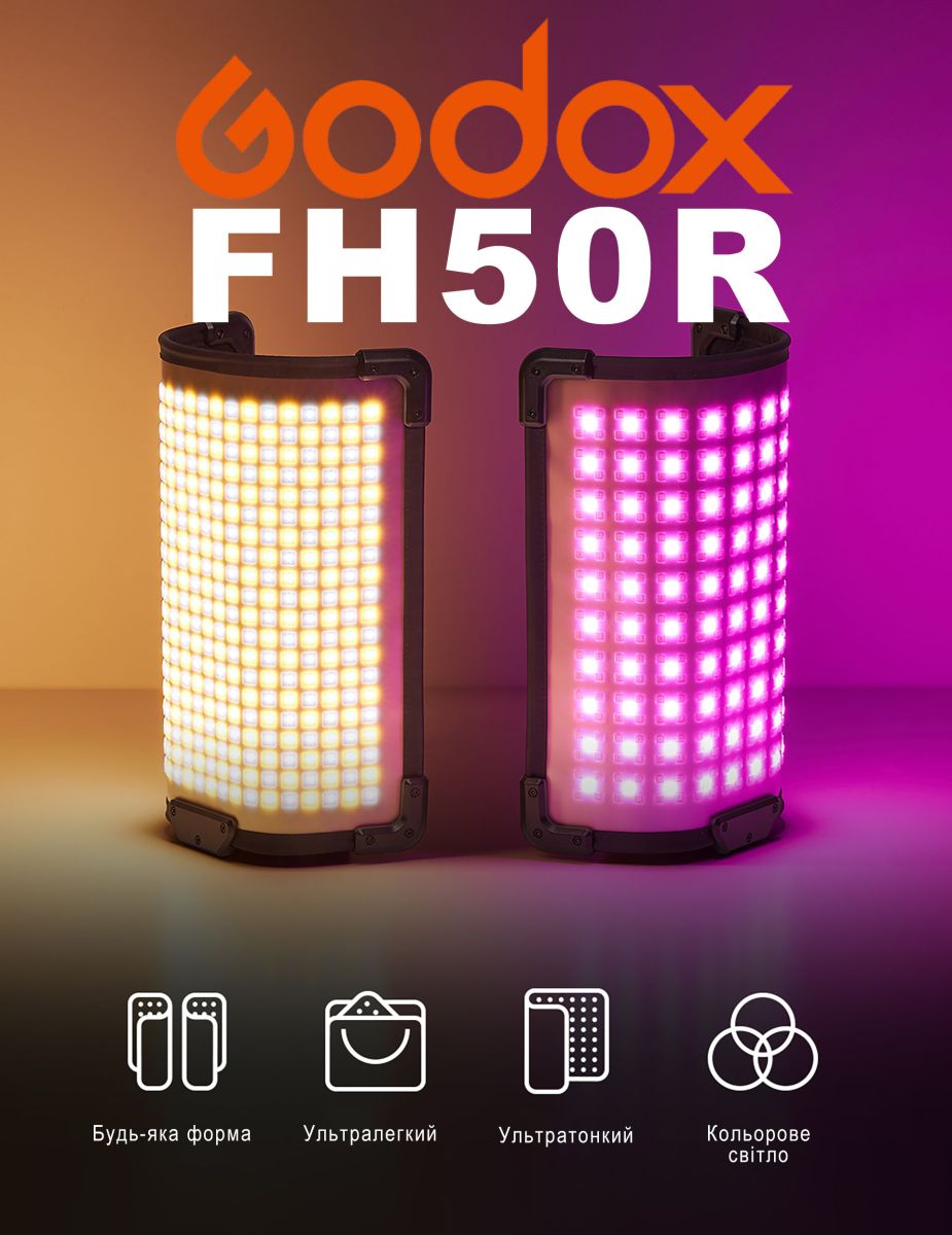 Godox FH50R стане незамінним інструментом для стримерів, контентмейкерів, відеографів і режисерів, для всіх тих, кому потрібна адаптивна і мобільна система освітлення.