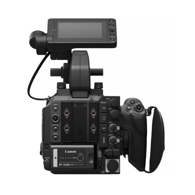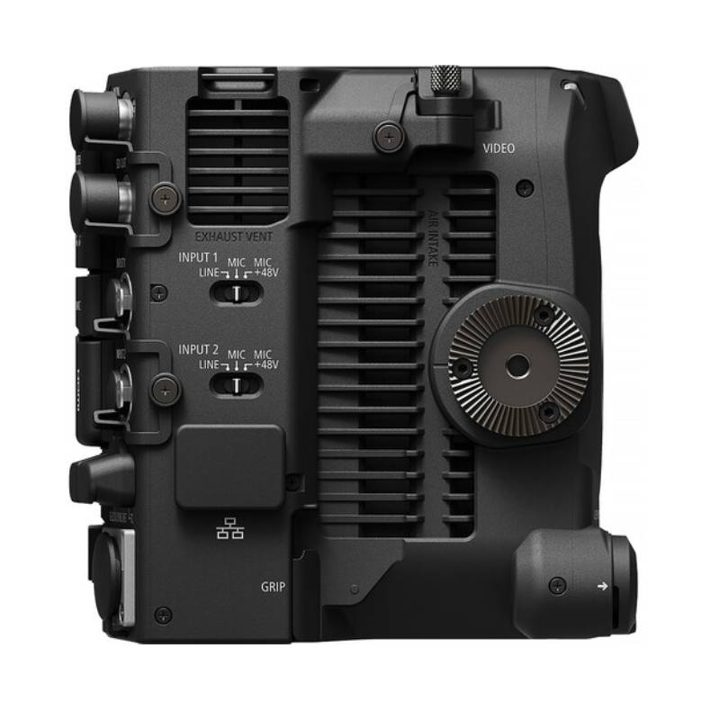 Вбудований роз’єм вводу/виводу, зокрема 12G-SDI, 3G-SDI, mini-XLR (2 шт.), вхід мікрофона, Remote, Timecode, LENS, а також Genlock/SYNC/Return. Вбудований модуль Wi-Fi/Ethernet забезпечує IP-трансляції в реальному часі (SRT/RTSP) і дистанційне керування за допомогою протоколу XC. Можливість використання додаткових аксесуарів за допомогою багатофункціонального роз’єму Canon.