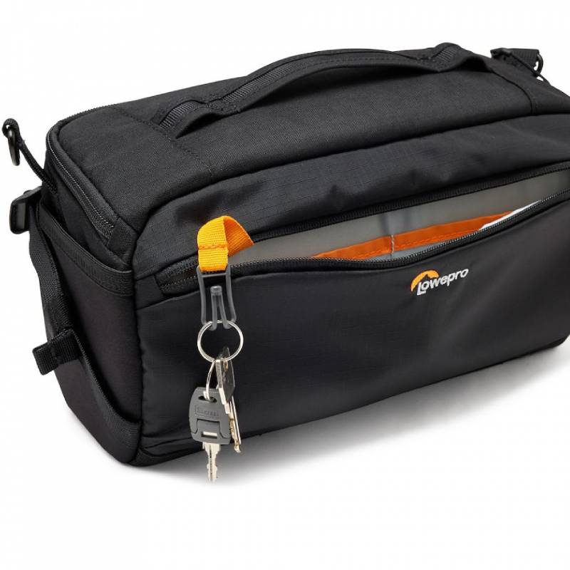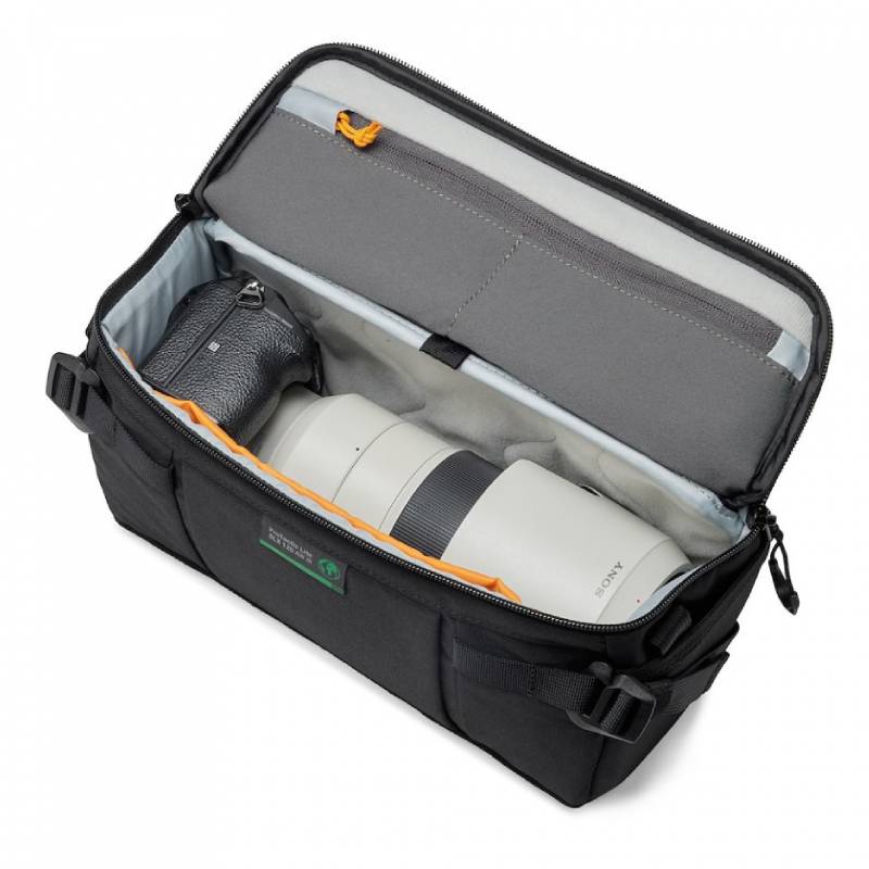 Сумка оснащена жорсткими роздільниками MaxFit™, які максимально ефективно використовують простір. По боках розташовані еластичні кишені для кришок об'єктивів або чохла All Weather Cover™ (AWC). Також передбачені об'ємна м'яка передня кишеня з карабіном для ключів та органайзером, кишеня на блискавці у кришці, а на задній стінці – плоска м'яка кишеня для аксесуарів.