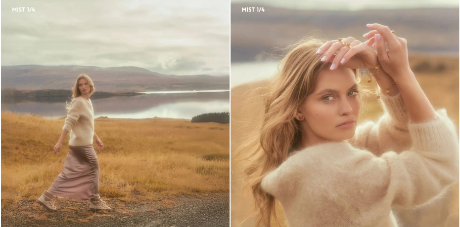 Природна ретуш: у портретній зйомці White Mist делікатно згладжує мікрорельєф шкіри, приховуючи зморшки та пори, водночас залишаючи очі та вії ідеально чіткими.